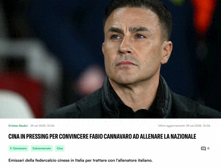 据意大利足球市场记者cristian giudici消息,中国足协对卡纳瓦罗是认可,目前,他们也派遣代表前往意大利本土,正全力与卡纳瓦罗谈判执教国足事宜。这名记者明确表示,中国足协的代表正身处米兰,试图谈判说服卡纳瓦罗接受邀请成为中国队新任主教练的。